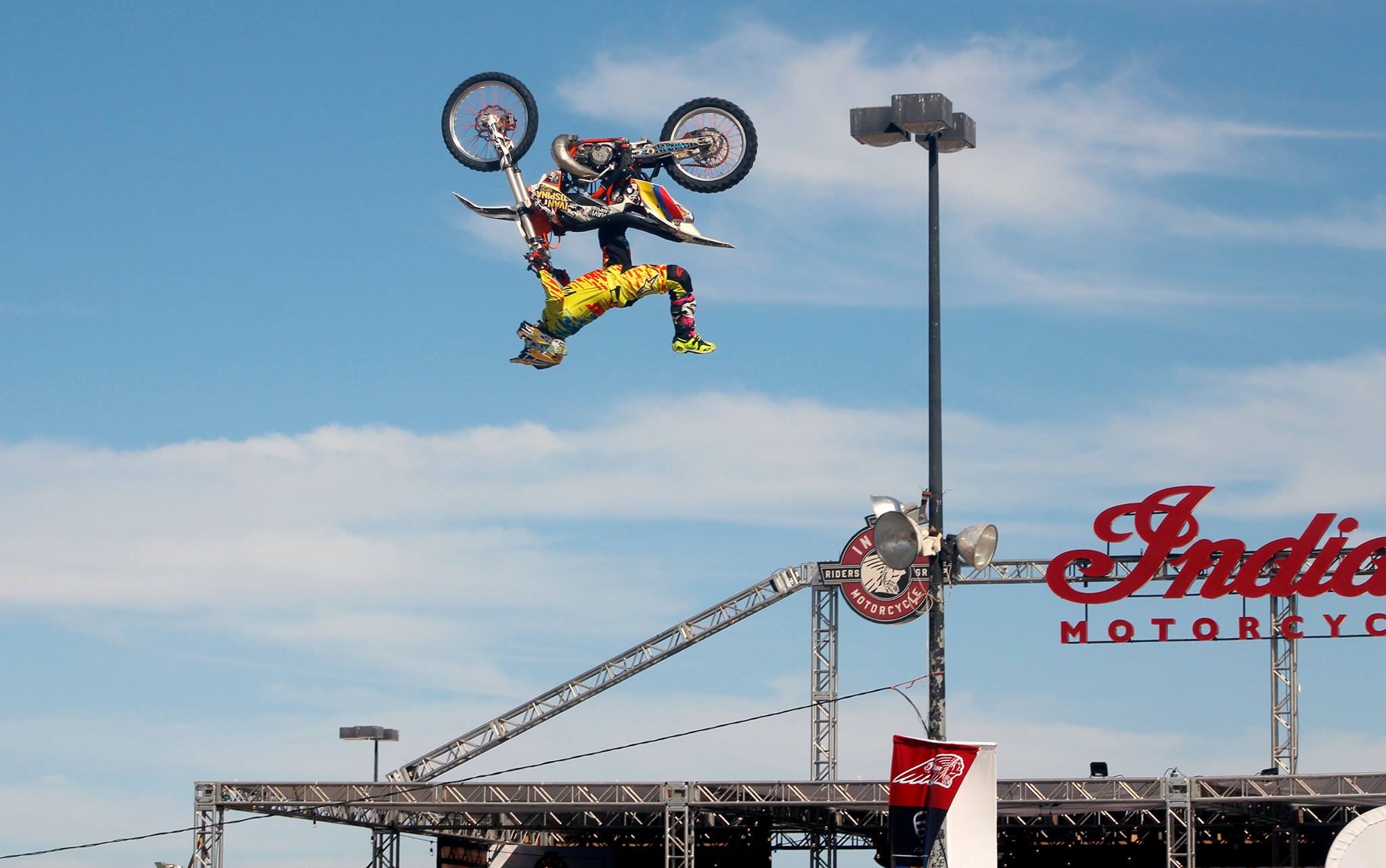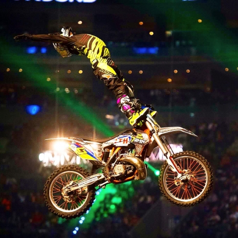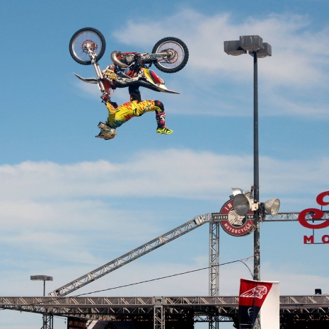 Freestyle Motocross is the fastest growing action sport of the new Age. This combination of suspense, thrill, and danger is exploding into the entertainment industry. Freestyle Motocross stunt shows are a great source of extreme and exciting entertainment for Circus, ausement parks, half time shows, or even a show itself.