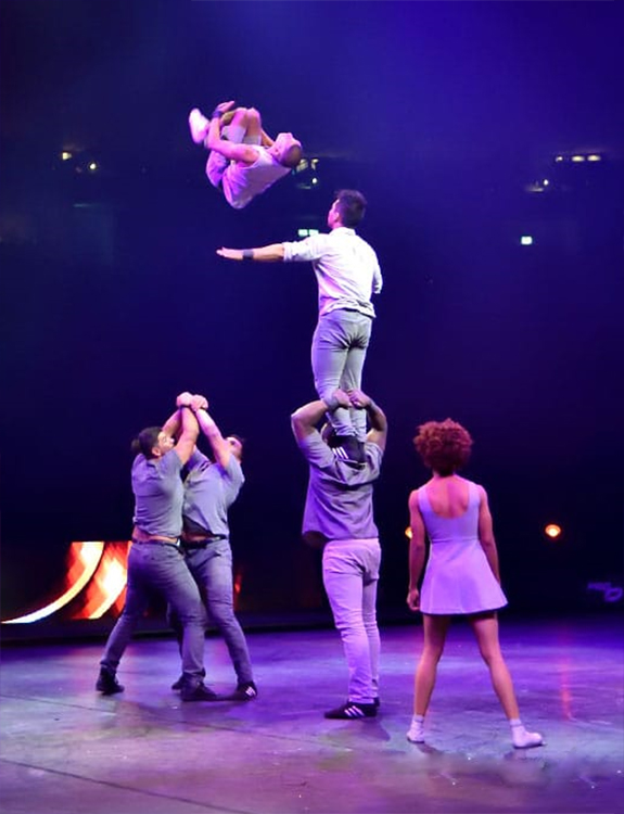 Nuestro acto de Banquina lo hemos podido presentar en distintos continentes, desde America hasta Europa y Asia, trabajando para Festivales, Parques Tematicos, Circos, entre otros, el grupo lo componen seis artistas del mas alto nivel, quienes le imprimen también todo el sabor de latinoamerica con bailes propios durante sus rutinas.