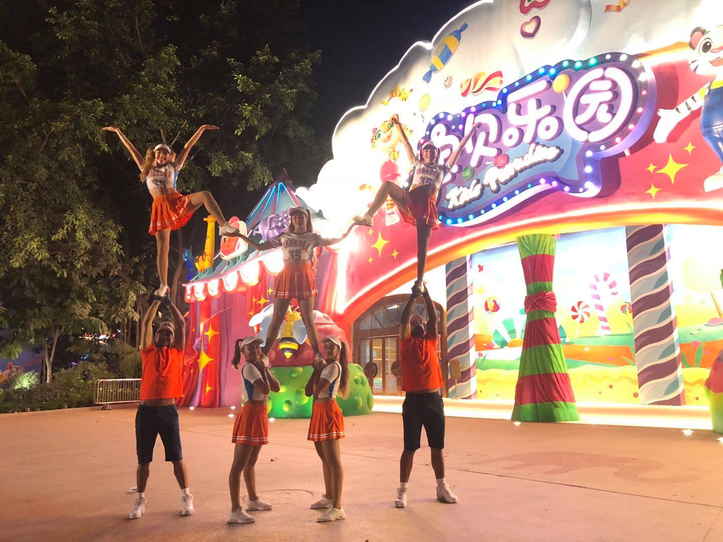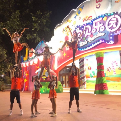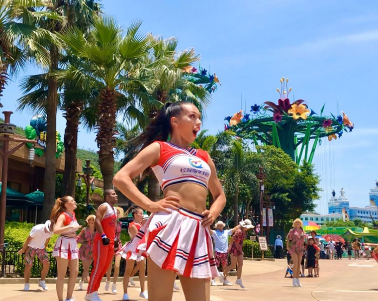 El equipo de CHEERLEADERS de nuestra agencia ha sido el primero en llegar a CHINA desde Latinoamérica, donde actualmente presenta su shows todos los días en el parque CHIMELONG.