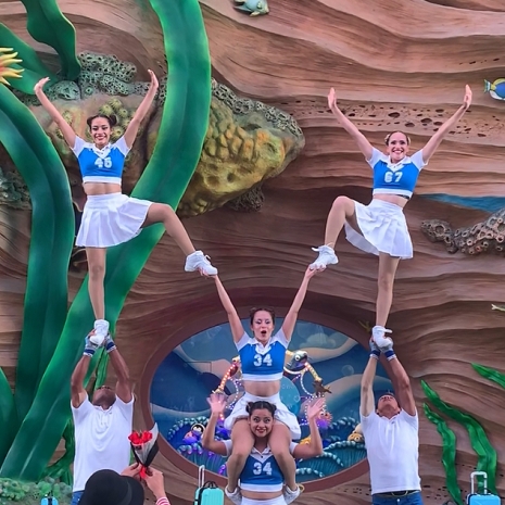 El cheerleading es un deporte que combina baile, acrobacia, gimnasia, mucho ritmo y sincronización, siempre buscando animar y alegrar públicos en masa, de lugares como desfiles, parques temáticos, inauguraciones, eventos deportivos, entre otros, los shows pueden durar de 5 minutos hasta 1 hora, los vestuarios son muy coloridos y los artistas siempre están irradiando mucha alegría.