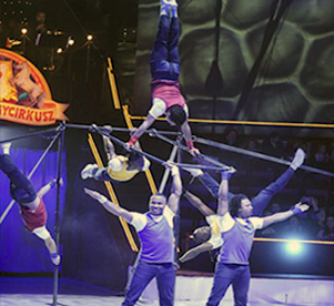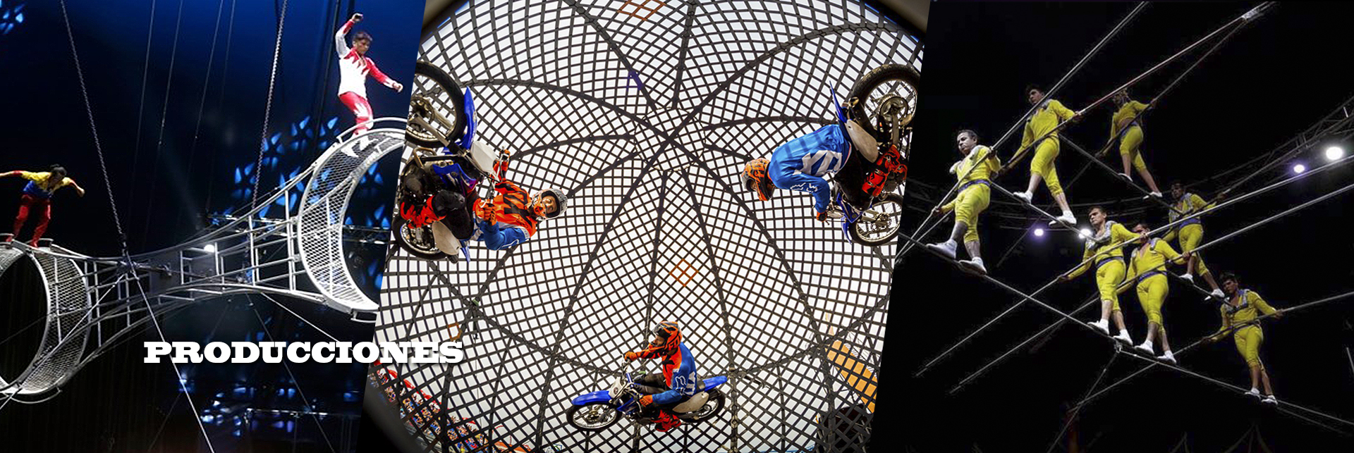 3 ACTOS DE CIRCO / ESTILO MORTAL / 45 MINUTOS SHOW / 14 ARTISTAS / 3 ESCENARIOS
