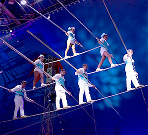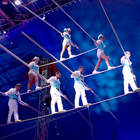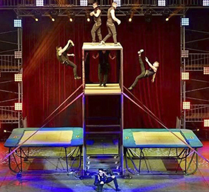 Durante el espectáculo el público verá los acróbatas arriesgando sus vidas volando por el aire haciendo mortales fuera del péndulo, acelerando súper rápido mientras dan vueltas de forma vertical y horizontalmente dentro del globo, asi como uno de los momentos más peligrosos, la pirámide mortal de siete artistas en el cable.